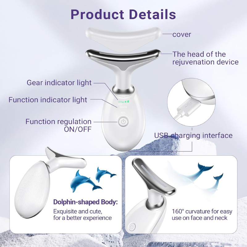 Pajisja për Masazh Liftingu të Fytyrës dhe Qafës me LED dhe EMS është një mjet inovativ bukurie që kombinon mikro-rrymat EMS, ngrohjen konstante, dhe dritat LED me 7 ngjyra për të stimuluar prodhimin e kolagjenit, përmirësuar qarkullimin e gjakut dhe për t’i dhënë lëkurës elasticitet, butësi dhe tonifikim natyral.