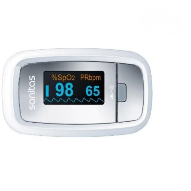 Pulsoksimetri Sanitas SPO 25 është një pajisje kompakte dhe e lehtë për përdorim, e dizajnuar për matjen e shpejtë dhe të saktë të nivelit të oksigjenit në gjak (SpO₂) dhe rrahjeve të zemrës (pulsit). Ideale për përdorim në shtëpi, gjatë udhëtimeve apo për monitorim të përditshëm shëndetësor.