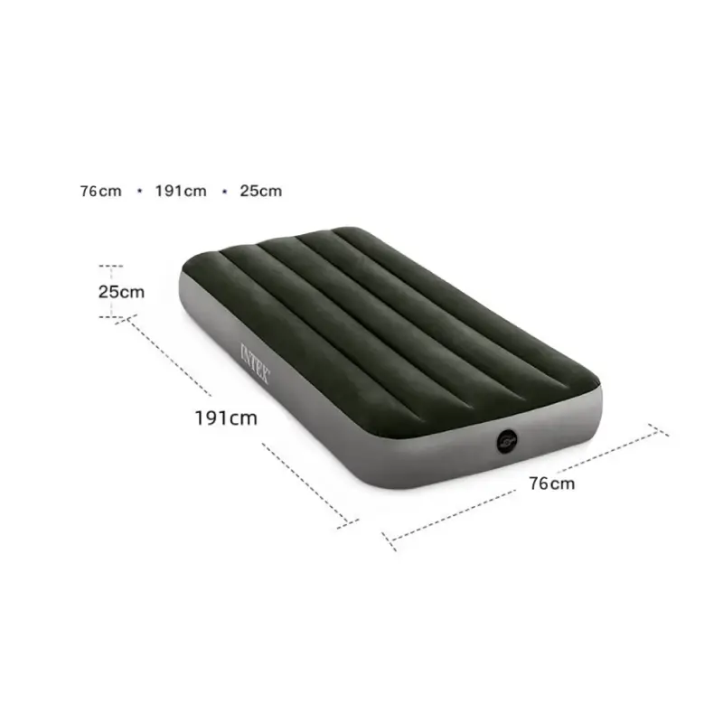 Me përmasa 76x191x25 cm, është i lehtë për t’u fryrë dhe zbrazur, si dhe shumë praktik për transport dhe ruajtje. Zgjedhje ideale për mysafirë apo përdorim të përkohshëm.